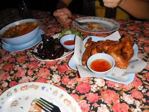 今夜はソムタン嬢を連れて帰ることに決定、マグロだったら1000B、全身が震えるような攻めのサービスだったら2000B、出来高払い的な予算の幅を決めてLUCKY BARに入店、客はファラン1人と嬢3人のグループ、どこかの店に所属しているであろうレディボーイ2人、ハイネケンをオーダー、ソムタン嬢もハイネケン、料理は手羽先の唐揚げ、フライドビーフ、トムヤムクンをオーダーする。