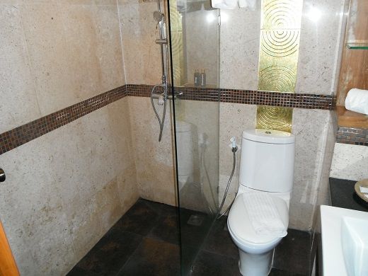 設備及び備品は液晶テレビ、ダブルベッド、デスク、小さなイスとテーブル、セーフティボックス(鍵付きの引き出し)、冷蔵庫、無料の飲料水2本、コーヒーセット、湯沸かしポットあり、ヘアドライヤー、バスローブなし、バスルームはバスタブなしのシャワーのみ、アメニティは石けん、シャンプー、ボディソープ、シャワーキャップ、綿棒、バスタオルとフェイスタオルが各2枚、マット用が1枚。