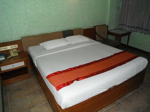 部屋は狭くはないけど古くてボロい安ホテルという感じ、ソイ10のコージーアットテンホテルに通じる雰囲気がある。テレビはブラウン管、小さなテーブルと椅子、狭いデスク、セーフティボックスあり、バスルームはバスタブ付き、ヘアドライヤーあり、バスローブとスリッパはなかった。