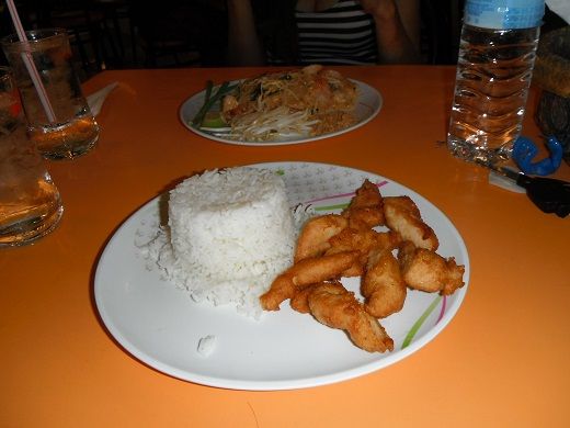 今までは「この男は私から離れない」と自信を持っていて、粗末に扱われていたような気がするが危機感を持って改心したのかもしれない。しばらくすると料理が来たので写真を撮ると、なぜか***も撮っていた。オーダーしたフライドチキンとライスはよく食べるけど無難な選択という感じ、パッタイも初めてこの店に来た時に食べたけど確か麺があまり美味しくなかったような記憶がある。