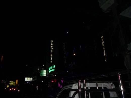 17時40分頃、少し酔ったのでジュースでも飲もうとショーガールズに入店、入口右のソファー席に座ってパイナップルジュースをオーダーする。ステージでは5人のダンサーがダンス中、待機中、接客中は10人くらい、かなり平均年齢が高そうで容姿も微妙なラインナップ。もはや興味はなくタバコを吸いながらパイナップルジュースを飲んでチェックビン、それでも20分くらいはいて退店した。