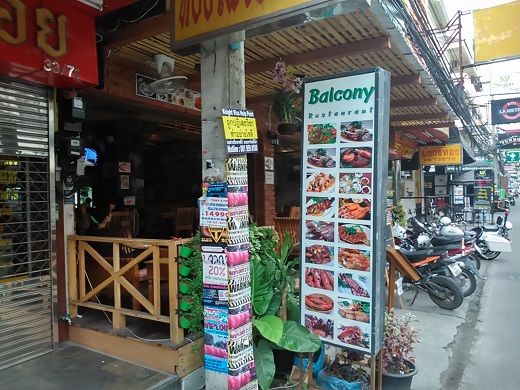 ウドン嬢は何も言わずにソイブッカオ方向に歩き出す。ニコムコート前の屋台が見えたのでスパゲティが食べたくなり、ウドン嬢に「スパゲティは好きか、ハンバーガーは好きかと」聞いてみたが、「嫌い!私はタイ料理、イサーン料理が好き!」と一蹴された。そのままウドン嬢に手を引かれて、7月と同じソイブッカオにあるシーフードレストラン「バルコニー」に連れて行かれる。
