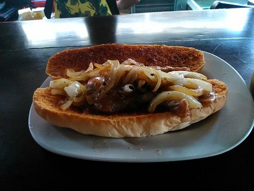 Bの処遇は部屋でゆっくり考えるとして、明日は帰国日なのでスワンナプームまでのタクシーを手配することにした。まずホテルのツアーデスクに聞いてみると高速料金込みの1000Bだったので、どこでも同じだろうと予約する。それから腹も減ったしビールも飲みたかったのでニコムコートに移動。ハンバーガー屋台でローストビーフロールをオーダーしてビールを飲みながら食べた。