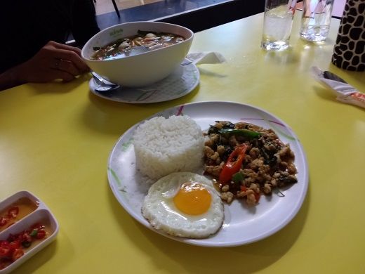 Pは店員を呼んでまとめてオーダーする。待っている間に電話番号を交換、LINEでも「友だち」になってスタンプを送り合っていたら料理が来たが、Pは「目玉焼きがない」とガパオを「返品」・・・。Pがいなかったら気付かずに食べるところだった。Pがオーダーしたのはトムヤムクンで他の嬢と同様にエビを取り分けてくれ、他の嬢と違いしっぽを切り分けてくれた。