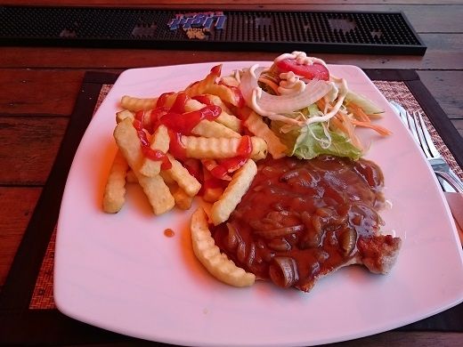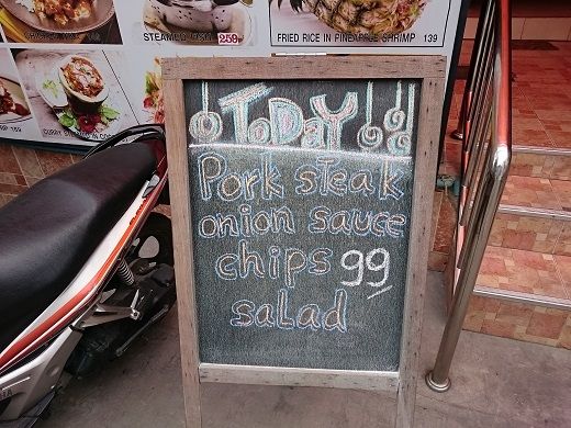 8時半頃起床。目覚めのシャワーを浴びて朝のコーヒーを飲んだが、どうもスッキリしない。風邪が悪化しているようなので近くの薬局で風邪薬、咳止め、抗生物質を購入して服用する。しばらくインターネットを見ていたら眠くなったのでウトウト・・・目が覚めたら13時過ぎ。14時頃、かなり楽になったので遅い昼食をとろうと外出。Maleeに行くとToday's Specialはポークステーキ。