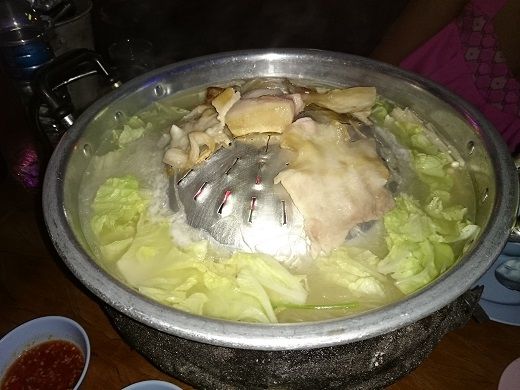 鍋の準備ができると、20歳嬢が煮たり焼いたりして取り分けてくれる。