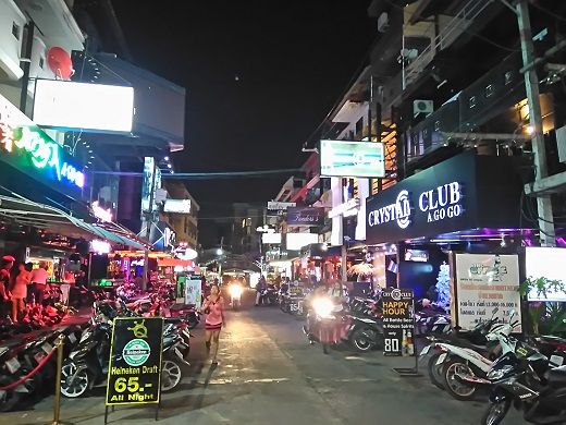 ビールが少し残っていたので、目を合わさず聞かれたことだけに答えていると、何を勘違いしたのか、「恥ずかしい?」とか言いながら、サオや乳首を撫でてくる。エロ接客に持ち込もうとするので、本当に「恥ずかしい」と言うと、「一緒に行く」と密着。そのうち「一緒に飲む」とドリンク催促をしてきたので、「ホテルに帰る」と言ってチェックビン。退店してソイブッカオに移動する。