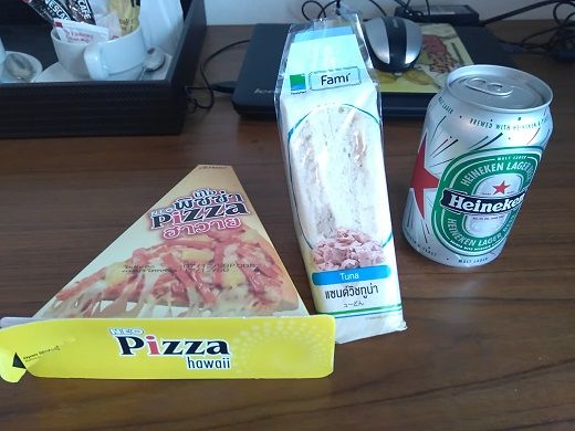 8時半頃起床。それほど飲んでいないので二日酔いはないが、疲労が蓄積されているようなので今日は休息日。早々にペイバーなしで新規嬢探しに専念することが決定・・・。ということで、シャワーを浴びて朝のコーヒーを飲む。午後になって14時頃、腹が減ったので外出。ファミリーマートでピザとサンドイッチを買って帰り、ストックしてあるビールを飲みながら食べる。