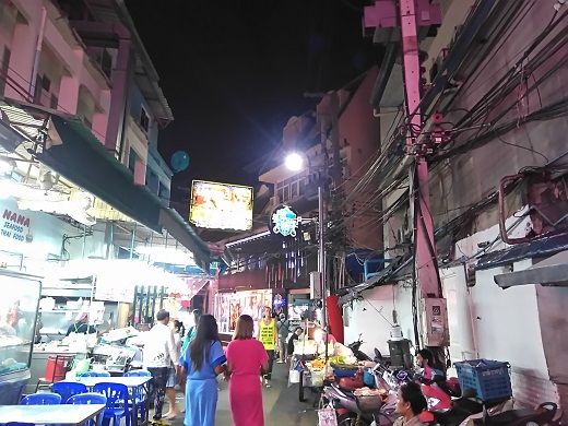 以降、何を話すでもなくダラダラ過ごしていると、隣の席に滞在2日目にペイバーした嬢(T)がいることに気付いた。ネコ耳に遠慮しているのか、目が合うと笑顔を見せるだけだが、手を出すと握ってくる。ネコ耳は「彼女はノーンサーウ、マイペンライ」と「ペイバーしてもいい」みたいなことを言ったが、そろそろ移動したかったのでチェックビン。Tに「明日来る」と言って退店・・・。