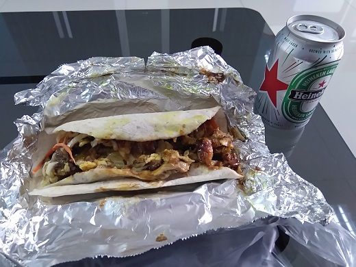 8時頃起床。昨夜は早く寝たので早く目が覚めた。今滞在は長いので遅くとも2時には寝るようにしよう・・・ということで、9時頃、近くのコーヒースタンドでアイスコーヒー45Bを購入。朝のコーヒーを飲んだら、やることもなく部屋でダラダラ過ごす。午後になって15時前、昼食をとろうと外出。ケバブが食べたくなったので、ソイレンキー入口の屋台で購入して部屋に戻る。
