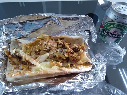 8時頃起床。昨夜は遅い時間にバチェラーとパラダイスに行ったのが間違いだったようで、軽い二日酔いだったが、シャワーを浴びるとやや回復。1時間も経つと完全に回復したので外出。近くのコーヒースタンドでアメリカンのアイス45Bを購入して朝のコーヒータイム。以降はやることもなく部屋で過ごす。午後になって15時前に外出。ニコムコート前の屋台でケバブを購入する。