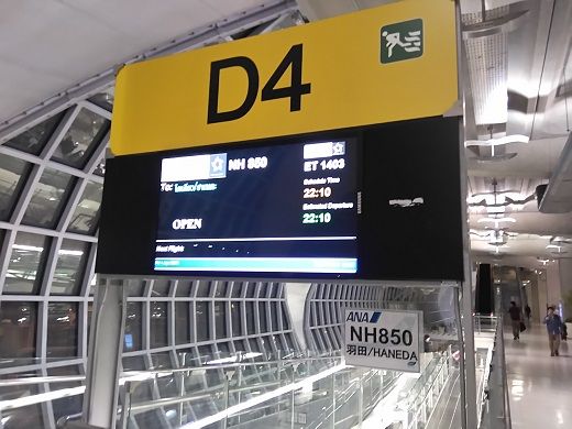 22時前、搭乗が始まったのでトイレを済ませて搭乗。NH850は定刻より約5分遅れて出発、寝ている間に離陸していた。ドリンクサービスでビールを飲もうと思ったが、次に目が覚めたのは2時頃。再び睡眠体勢に入り、機内食の時間はコーラのみ。その後も寝たり起きたりを繰り返していると着陸。NH850は定刻より約40分早い5時20分頃羽田空港に到着・・・今滞在が終わった。
