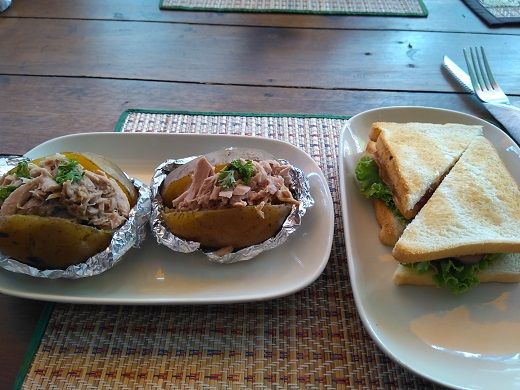 12時頃、近くのマッサージ店でフットマッサージ1時間とヘッドアンドショルダーマッサージ1時間を受けてリフレッシュ。遅い昼食でソイブッカオのレストラン「Malee3」に行くと、数日前から滞在している知人(J氏)がいたので同席。99BのToday's Specialは最も嫌いなレバーオニオンだったので、ツナのスタッフドポテトとベーコンサンド、ハイネケンの生をオーダーする。